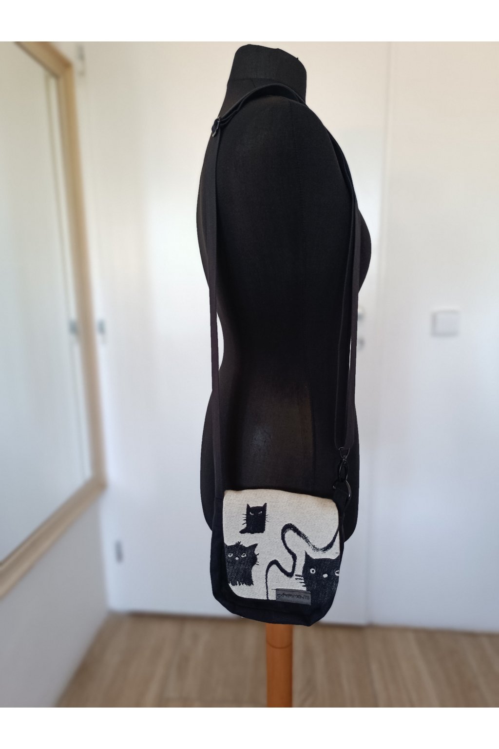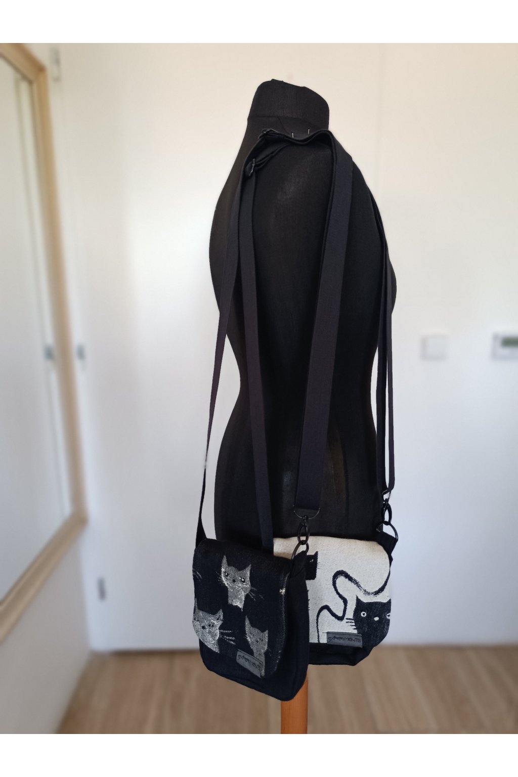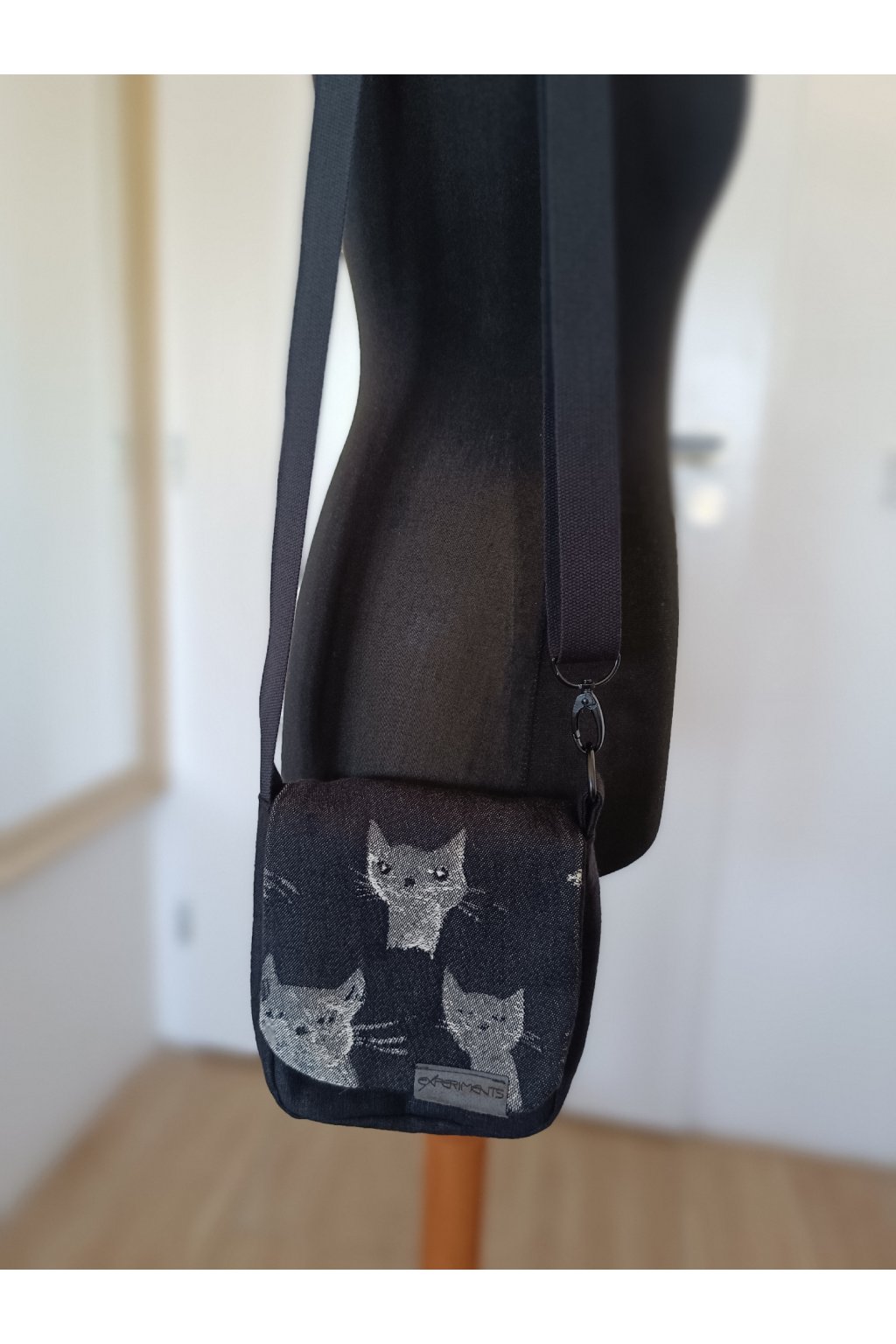 Kabelka z pevného lnu a scrapu nosicího šátku Wild Slings s motivem koček.
