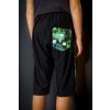 Kraťasy nad kolena, vzadu s kapsou, v pase na stažení šňůrkou.